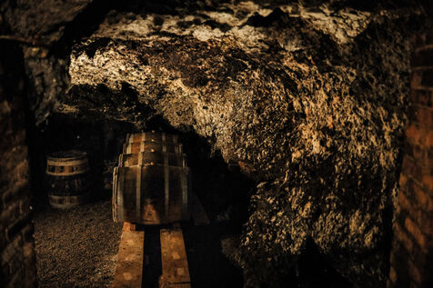 Back at the winery, once the tour of the vineyards is complete, the winemaker will check on his wine resting in its aging barrels below the village of Blanzat. These unusual cellars are dug into the lava flow descending from the Chaîne des Puys several kilometers away.