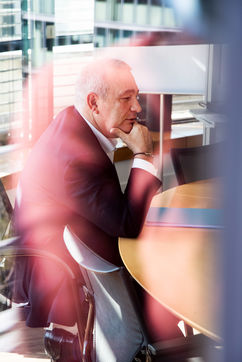 Cette série est un travail de commande que je réalise pour un hebdomadaire Lyonnais ; les entretiens sont publiés sous la forme d'un grand témoin chaque semaine. Je dispose d'une heure, parfois quelques minutes pour imaginer et décrire ce que je vois. Je découvre le lieu au dernier moment lors de la rencontre, et à la hâte me mets en quête de la lumière parfaite et des lignes qui révéleront sujet et décor dans une délicate harmonie.