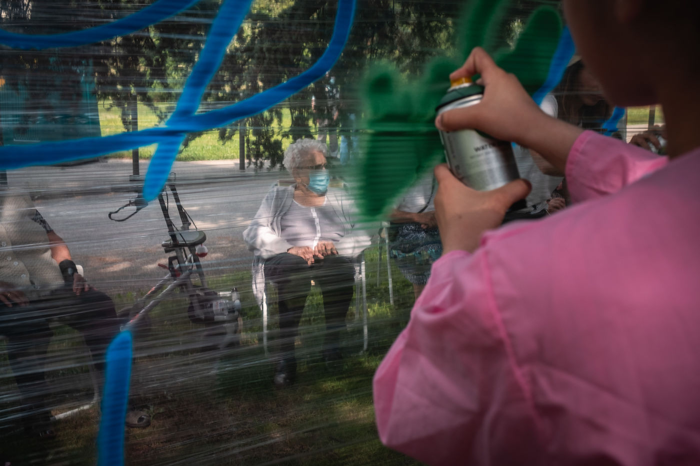 As part of the Street Art Fest in Grenoble, elderly people and children participate in a graffiti discovery workshop led by two members of a Grenoble Street Art collective.