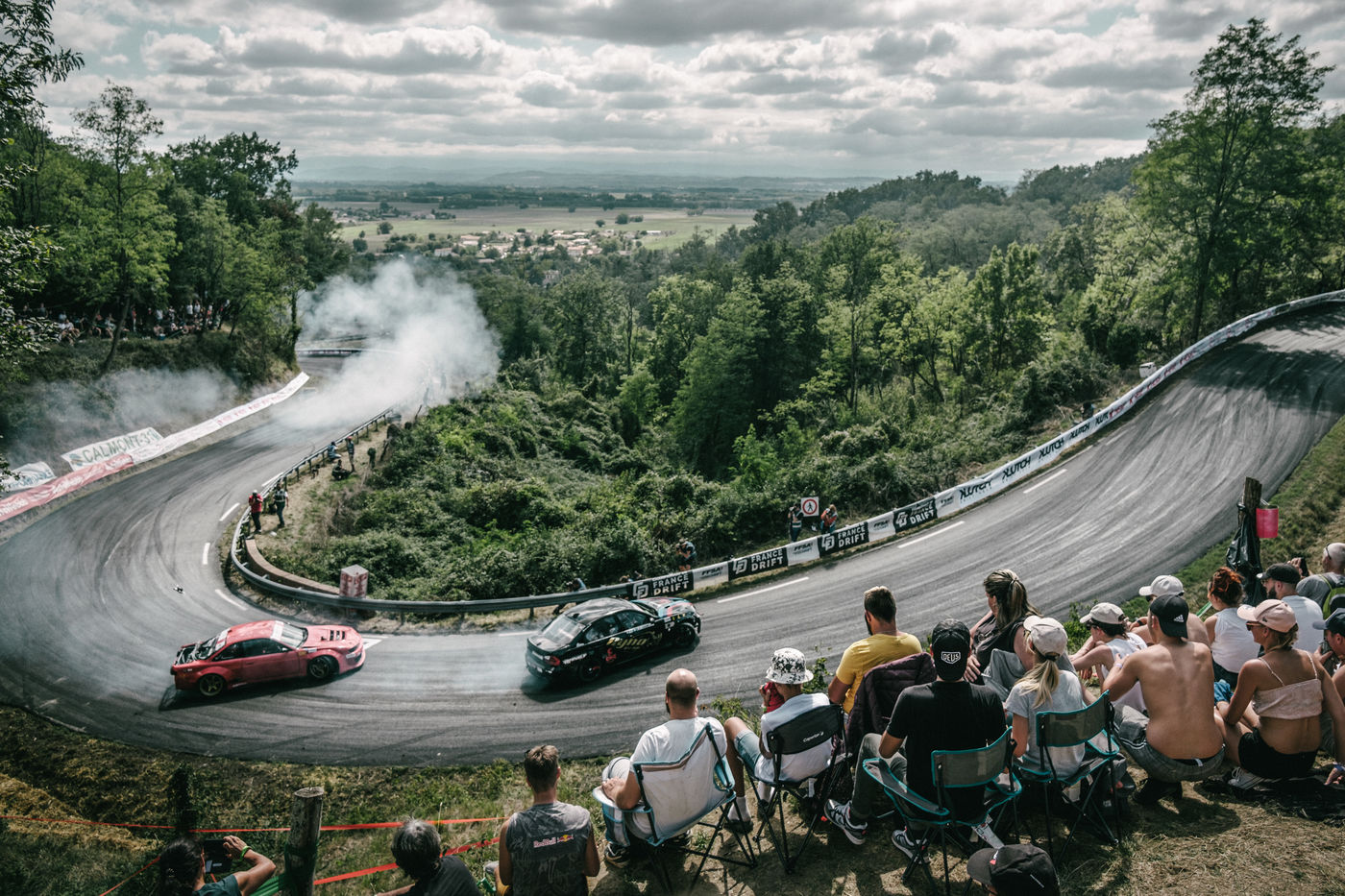 Rounds 3 and 4 of the French drifting championship, "Touge" race on the track of the Calmont hillclimb (31). Touge" (To-gué) is a type of car racing originating in Japan, taking place on winding mountain roads, and partly the origin of drifting. There are several types of races, including the Time Trial, or the Chase for the lead: the two cars start one behind the other, the lead car wins if it outdistances the second, and the second wins if it overtakes the first.