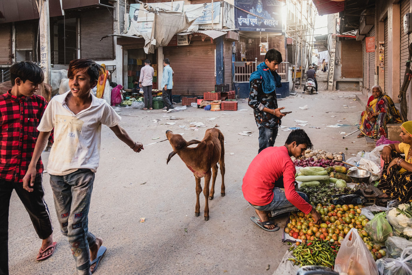 Scènes de vie à Jaipur, "la ville rose", capitale du Rajasthan au Nord de L'Inde.