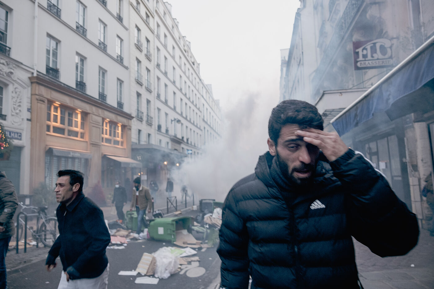 Echauffourée en presence de nombreux Kurdes, en marge de la venue de Gerald Darmanin apres l attaque ayant fait plusieurs morts parmi la communaute Kurde, le jour meme.