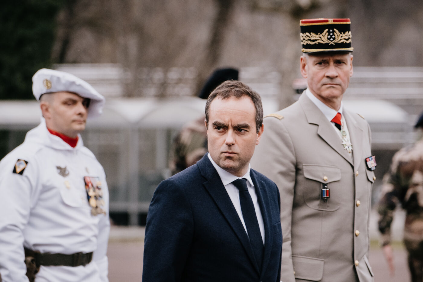 Visit by Sebastien Lecornu, Minister for the Armed Forces, to the 93rd mountain artillery regiment, which celebrates its 100th anniversary in 2024, on the outskirts of Grenoble. Presentation of artillery capabilities, including Caesar guns, as part of the training of the Ukrainian armed forces.