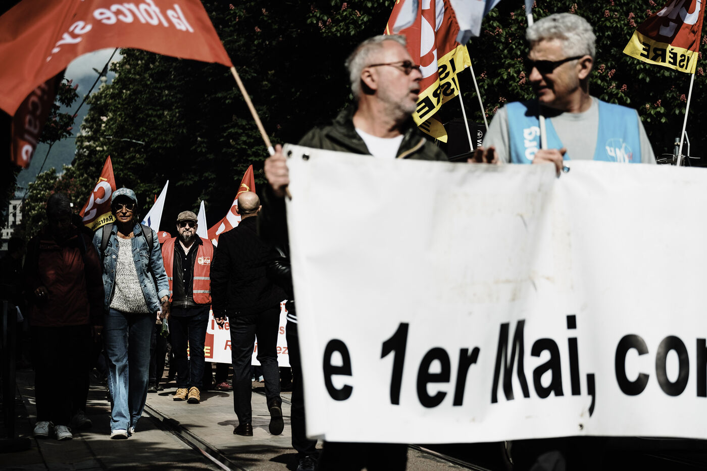 Demonstration on the occasion of National Workers' Day, from Alsace Lorraine to Pazc Paul Mistral in Grenoble, Isère.
