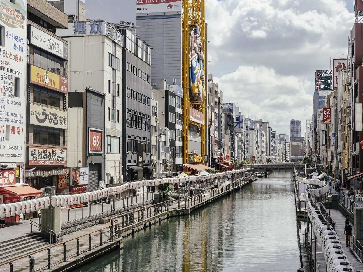 Située à une heure de train de Kyôto, on est frappé quand on arrive à la gare d' Osaka Station City par l'architecture qui semble moins carrée que la ville de Tokyo. Très peu de touristes occidentaux, on sent une effervescence palpable ; on en prend pleins les yeux et les oreilles. Les devantures des magasins et des restaurants rivalisent par la taille et le nombre de néons.