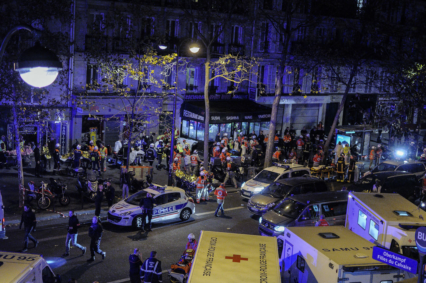 Sur le Boulevard de Filles du Calvaire, deuxième surprise: des centaines de voitures de policiers et de sapeurs-pompiers sont stationnées en attente.