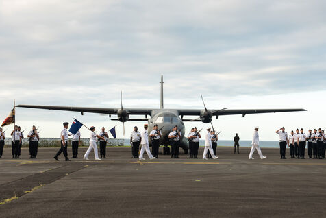 Military handover ceremony between Lieutenant-Colonel Romain Gaston and Lieutenant-Colonel Karine Gauthier. An officer specialising in human resources, she is the first woman to head the French Air Force's 181 Air and Space Base at Gilot on Reunion Island. This ceremony continues to support the Air Force's commitment to highlighting the potential of women in the army in all positions.