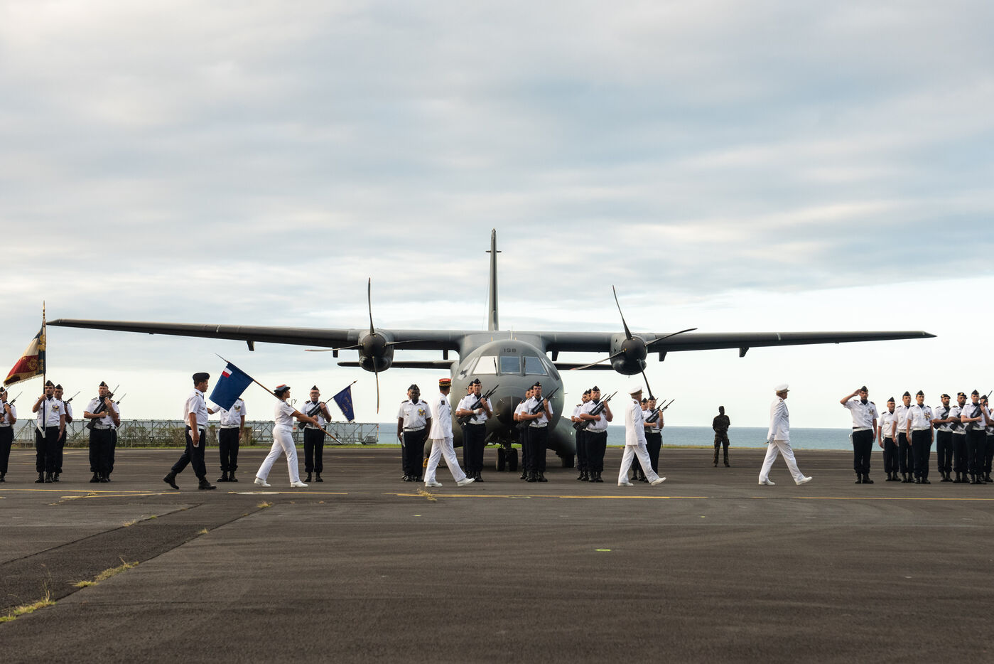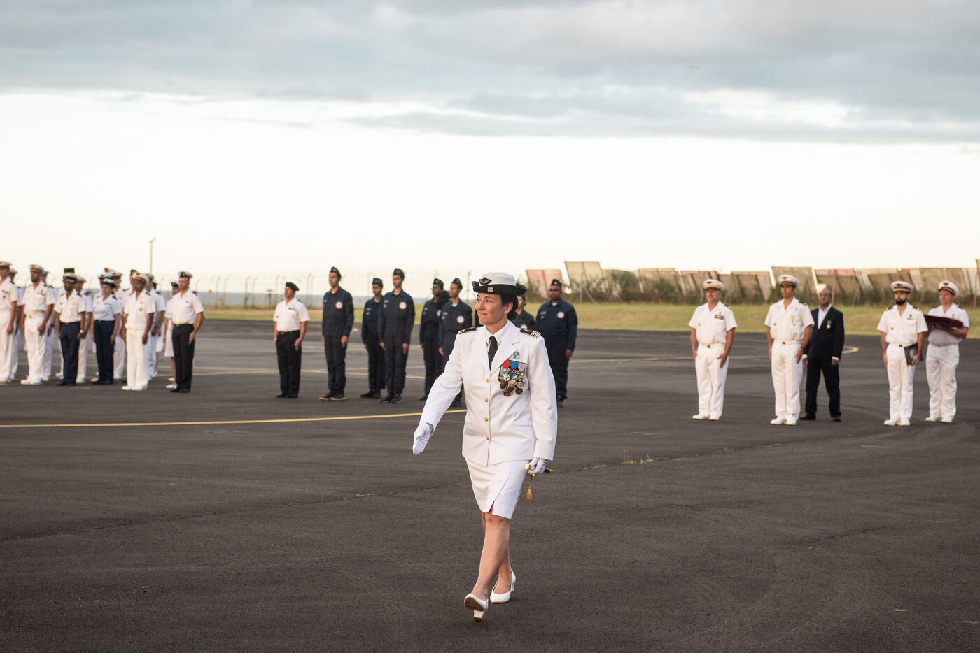 Cérémonie militaire de passation de commandement entre le lieutenant-colonel Romain Gaston et la lieutemenat-colonel Karine Gauthier. Officier spécialiste des ressources humaines, elle la première femme à prendre la tête de la base aérienne 181 de l'Armée de l'air et de l'Espace à Gilot sur l'île de la Réunion. Cette cérémonie continue d'appuyer la volonté de l'Armée de l'Air et de l'Espace de mettre en avant le potentiel des Femmes au sien de l'armée à tous les postes.