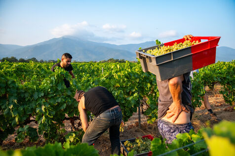 Dans cette région, l’entraide, le faire ensemble, est un élément nécessaire à la production du vin. Être indépendant, hors du circuit des coopératives, amène les vigneron·nes à « faire avec ». Une vigne n’existe pas seule, il faut une tribu pour faire un vin. Faire du vin nature, sans l’utilisation de produits chimiques et de sur-mécanisation, nécessite plus que jamais les mains des hommes et des femmes.