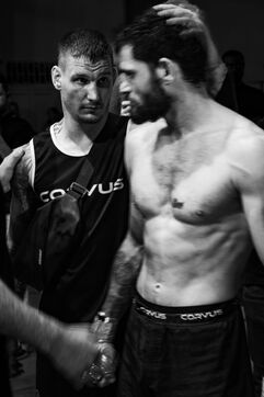 This project is envisioned by the meeting of comabatants and the microcosm around them. The project will be a mix of photographs of materials, bodies and close-ups during training and combat. Associated with these times will be documentary photographs of the fighters/trainers in their daily lives, with their families, at work. Recordings will be made of intimate moments.