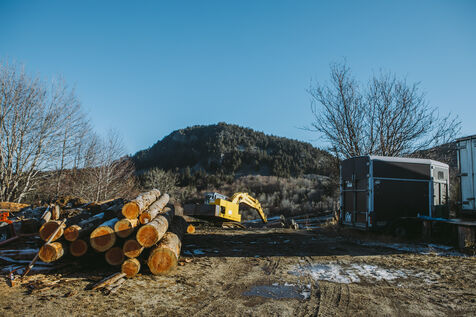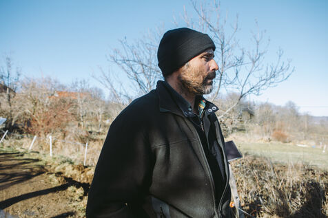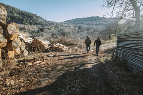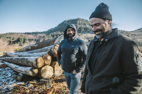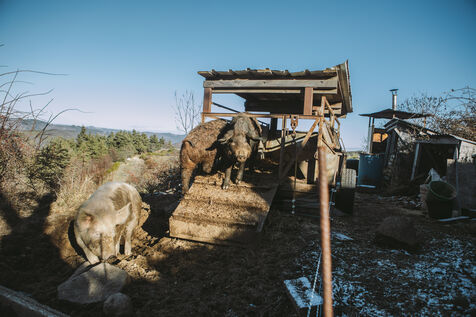 France - Treynas, 21 janvier 2024, sur la commune de Chaneac en Ardèche, la communauté agricole auto-gérée Longo Maï s'explique après avoir abattu sept chiens appartenant à des chasseurs, le samedi 16 décembre 2023. Selon ses membres, une meute d'une dizaine de chiens a attaqué leurs animaux. Retour sur les circonstances et l'histoire de cette communauté ardéchoise vivant principalement de l'exploitation forestière et de l'agriculture raisonnées. Photographies de Marie Julliard / Hans Lucas.