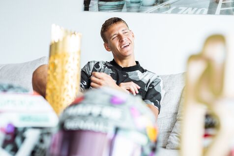 ANDORRE - Andorre-la-Vieille, 28 juillet 2021, rencontre avec le leader du championnat du monde Moto GP chez lui, dans son appartement en Andorre, pendant la trève estivale. Fabio Quartararo dans son quotidien chez lui, ses entrainements, ses trophées. Photographie de Marie Julliard / Hans Lucas.