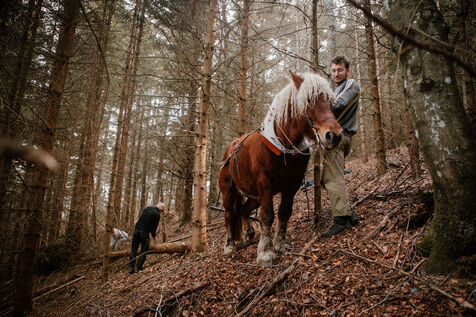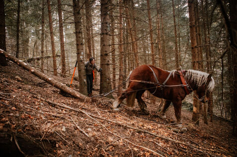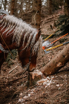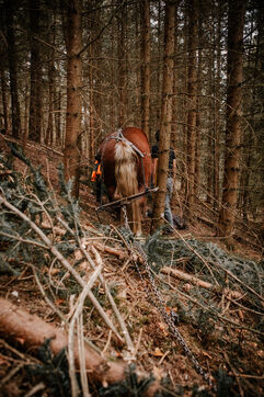 FRANCE - ENVIRONNEMENT - DÉBARDAGE À CHEVAL TRADITIONNNEL EN FORÊT