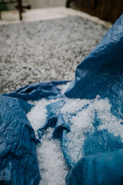 FRANCE - Le Puy-en-Velay, Thursday May 16, 2024, the month of May continues to be stormy and rainy, today hail fell on the Haute-Loire prefecture with hailstones over a centimeter in diameter. Photography by Marie Julliard / Hans Lucas.