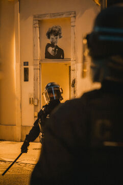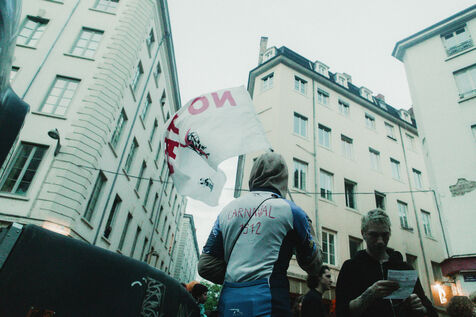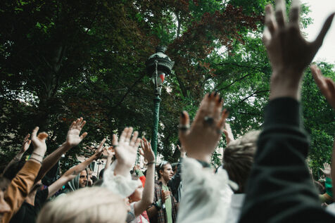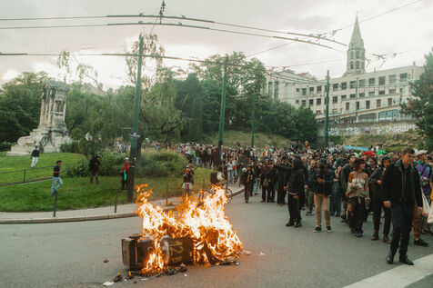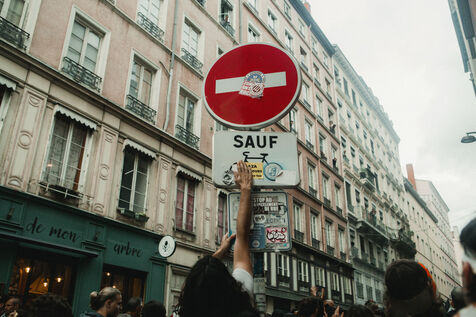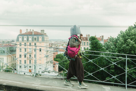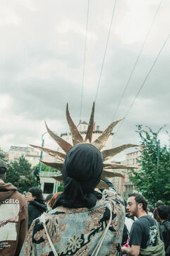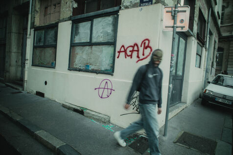 FRANCE - Lyon, vendredi 24 mai 2024, une quarantaine d'organisations (Lyon insurrection, Action justice climat Lyon, les Soulèvements de la terre Lyon, l'assemblée des Gilets jaunes Lyon et environs...) ont appelé à la mobilisation à Lyon ce vendredi 24 mai, à l'occasion de la seconde édition du « carnaval des Pentes », « festif et revendicatif » pour protester contre « les Jeux Olympiques, la guerre en Palestine et les réformes de Macron ». Malgré l'interdiction de l'événement par la préfecture, les manifestants se sont rassemblés place de la Croix-Rousse. Photographie de Marie Julliard / Hans Lucas.