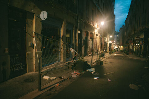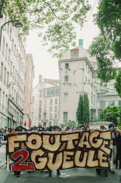 FRANCE - Lyon, Friday, May 24, 2024, some forty organizations (Lyon insurrection, Action justice climat Lyon, les Soulèvements de la terre Lyon, l'assemblée des Gilets jaunes Lyon et environs...) called for mobilization in Lyon this Friday, May 24, on the occasion of the second edition of the "carnaval des Pentes", "festive and demanding" to protest against "the Olympic Games, the war in Palestine and Macron's reforms". Despite a ban on the event by the prefecture, demonstrators gathered in Place de la Croix-Rousse. Photography by Marie Julliard / Hans Lucas.