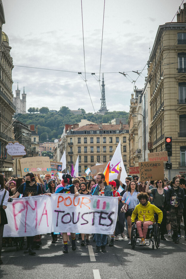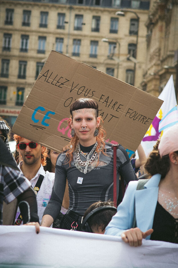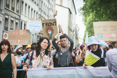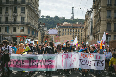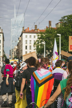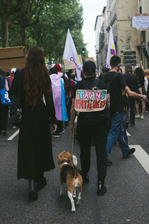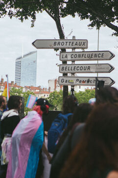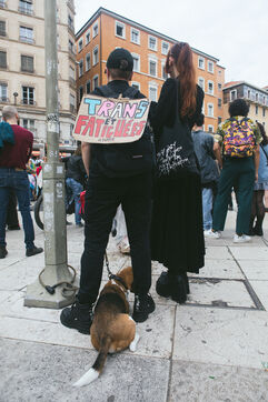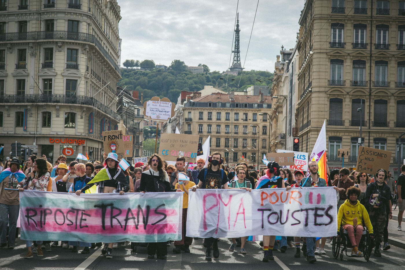 Following a national call launched by Acceptess-T, Espace Santé Trans, Fransgenre, Inter-LGBT, Organisation de Solidarité Trans (OST), OUTrans, SOS Homophobie and Toutes Des Femmes, and in the face of attacks on trans people's rights in both the Assembly and the Senate, the GA Riposte Trans Lyon organized the initiative. The demonstration left Place Louis Pradel at 5pm to arrive at Place Guichard.
