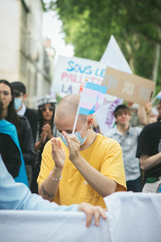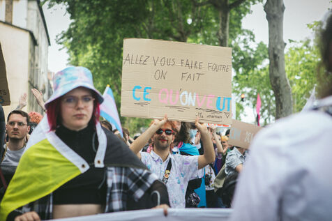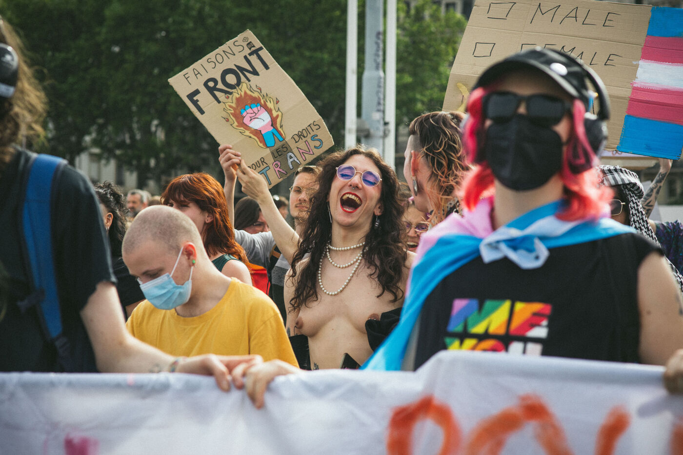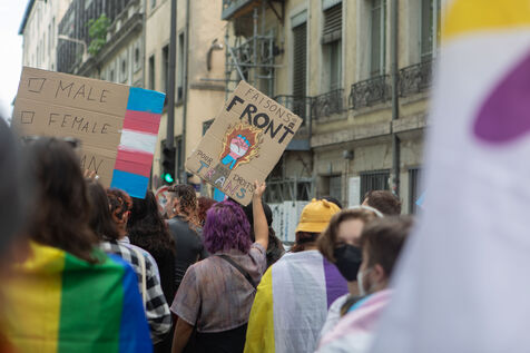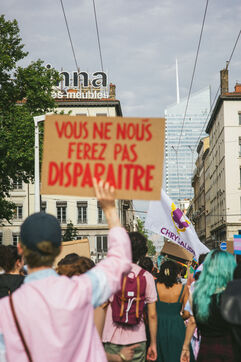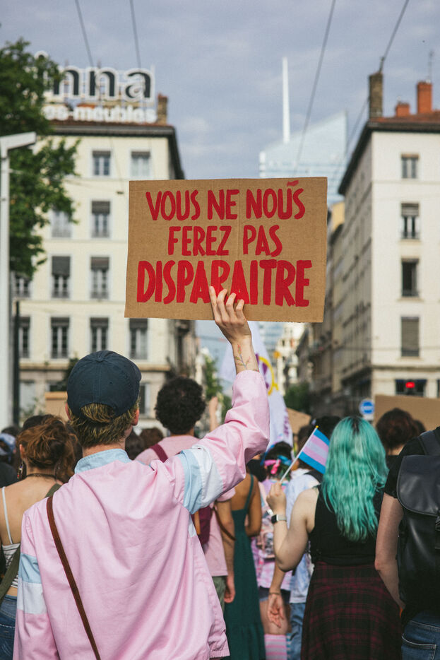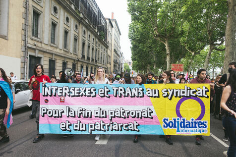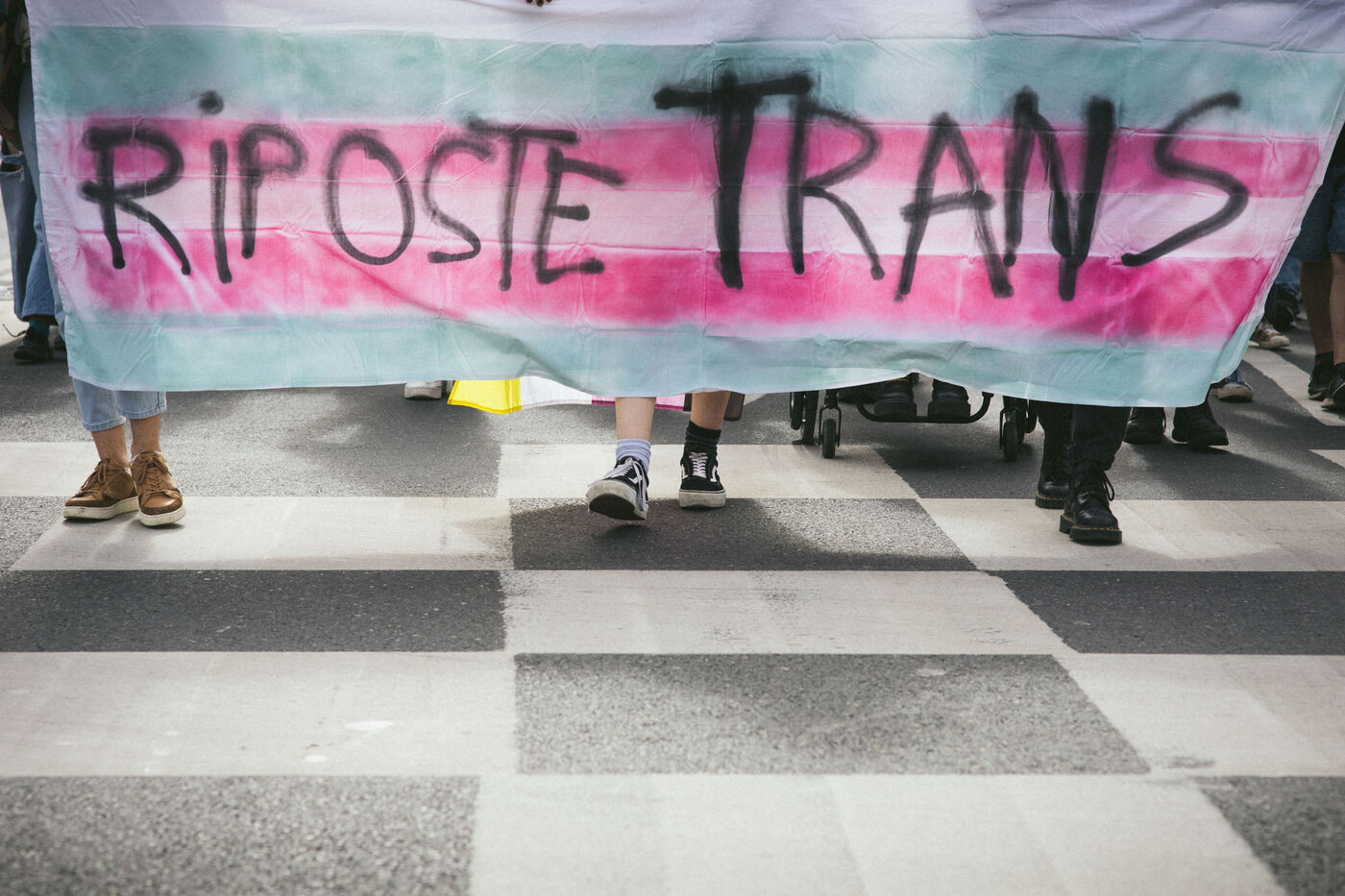 Following a national call launched by Acceptess-T, Espace Santé Trans, Fransgenre, Inter-LGBT, Organisation de Solidarité Trans (OST), OUTrans, SOS Homophobie and Toutes Des Femmes, and in the face of attacks on trans people's rights in both the Assembly and the Senate, the GA Riposte Trans Lyon organized the initiative. The demonstration left Place Louis Pradel at 5pm to arrive at Place Guichard.