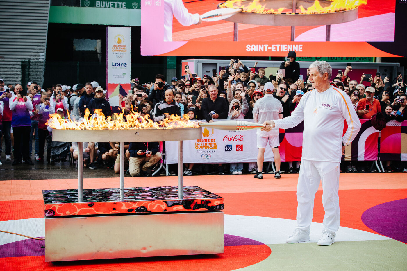 The passage of the Olympic flame through the Loire was accompanied by a great deal of fervor, despite heavy rain in the capital. Icon and captain of ASSE's golden generation in the 1970s, Jean-Michel Larqué once again made Geoffroy-Guichard and Saint-Étienne shine with the lighting of the flame. Also present on the forecourt were Amélie Oudéa-Castéra, Minister for Sport and the Olympic and Paralympic Games, and Gaël Perdriau, Mayor of Saint-Etienne.