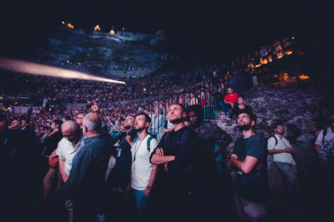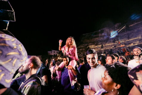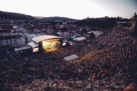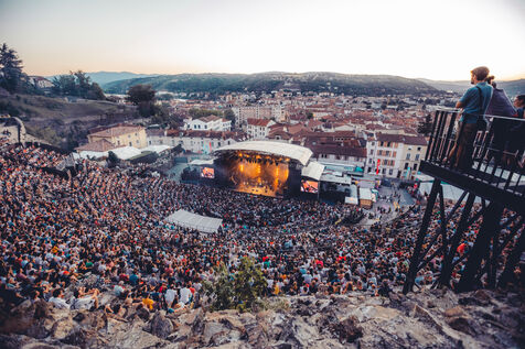 FRANCE - Vienne, 2022 - 2023, photographies d'ambiance prises durant le festival Jazz à Vienne, à Vienne en Isère (38), en 2022 et 2023. Public, ambiance, théâtre, infrastructures... Photographie de Marie Julliard / Hans Lucas.