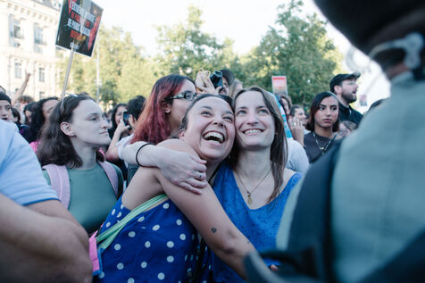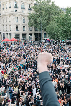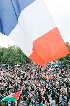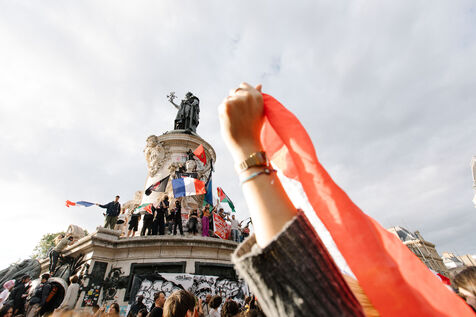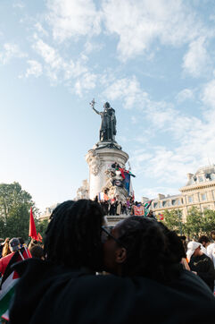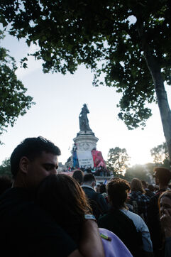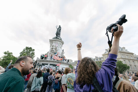 FRANCE - Paris, Sunday, July 7, 2024, demonstration at Place de la République following the result of the legislative election to form a new assembly. Photography by Marie Julliard / Hans Lucas.