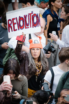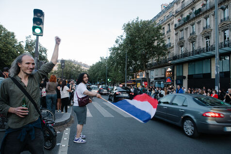FRANCE - Paris, dimanche 7 juillet 2024, manifestation place de la République suite au résultat de l'élection législative constituant une nouvelle assemblée. Photographie de Marie Julliard / Hans Lucas.