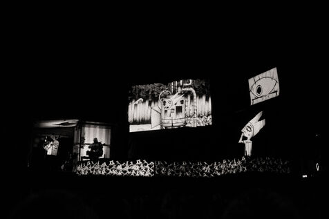 Fantôme is a show at the crossroads of digital arts, music and object theater, based on an animated film. Immersing a thousand people in a powerful dreamlike adventure, the show tells the story of a child named Fantôme who, in spite of himself, provokes a popular revolt and the collapse of a totalitarian system.
