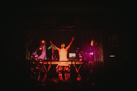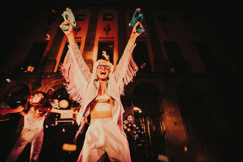 The members of the legendary San Francisco collective shared their completely offbeat universe on the square in front of the Hôtel de Ville, offering an extraordinary set, from electo to hip-hop, via afrobeat, reggae ton, techno or musette, as part of the In festival of the 36th edition of Aurillac's street theater festival. With DJ Flakes, David Guetto, Tommy Clean, El Diablo, Nyls aka Nyls, Pickle Boy, Johnny la Flèche, Honey Badger, L.i.a, Lucifer.