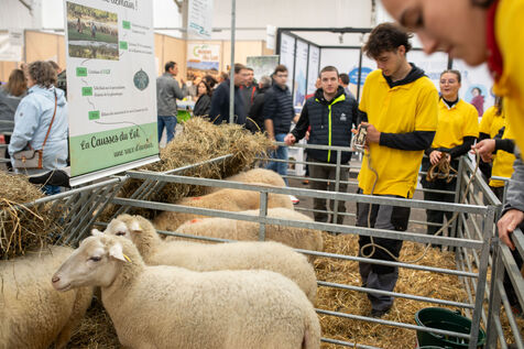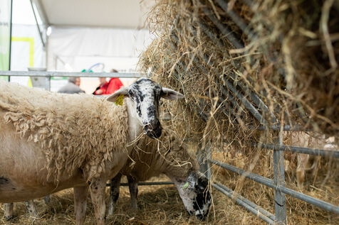 FRANCE - Cournon d’Auvergne, 03 octobre 2024, photographie d’illustration d’ovins (mouton) et de bovins (vache) lors du Sommet de l’Elevage. L’occasion pour la nouvelle ministre de l’Agriculture, Annie Genevard, de se confronter à des éleveurs remontés face aux difficultés du secteur notamment concernant le problème de la fièvre catarrhale ovine (FCO), également appelée maladie de la langue bleue ou en anglais Bluetongue (BT), c’est une maladie virale touchant majoritairement les moutons et qui peut également affecter les bovins, les chèvres et d'autres ruminants sauvages. Photographie de Marie Julliard / Hans Lucas.