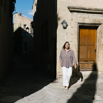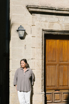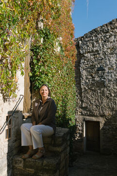 FRANCE - Le Barroux, Thursday, September 11, 2025, meeting with Dutch-speaking Belgian writer Sigrid Bousset in the Provençal village of Le Barroux in Vaucluse to promote her biographical book about the writer Ivo Michiels, who lived in this village for forty years. Born in 1969, Sigrid Bousset is a Belgian writer, playwright, and literary curator. She co-founded and directed Passa Porta, the international house of literature in Brussels, until 2014. Photograph by Marie Julliard / Hans Lucas.