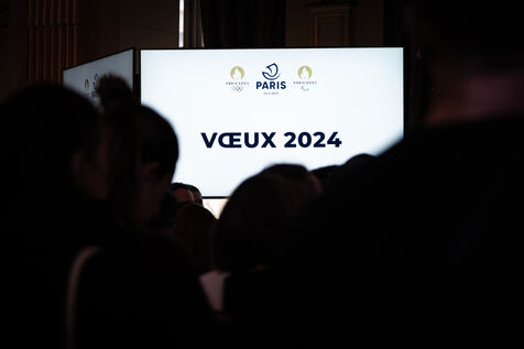 La maire de Paris Anne Hidalgo a présenté ses voeux pour l'année 2024 aux élus de la capitale le 10 janvier 2024 à l'Hôtel de Ville.