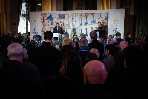 Paris mayor Anne Hidalgo presented her wishes for 2024 to the capital's elected representatives on January 2024 at the town hall.