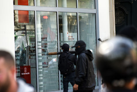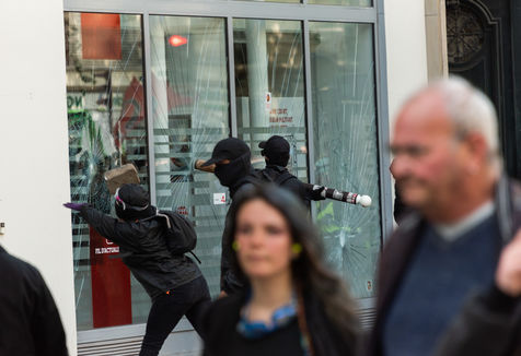 traditional May Day labour union march in Paris. Demonstration was disrupted by the violence between protesters and police.