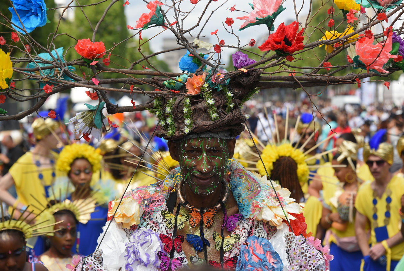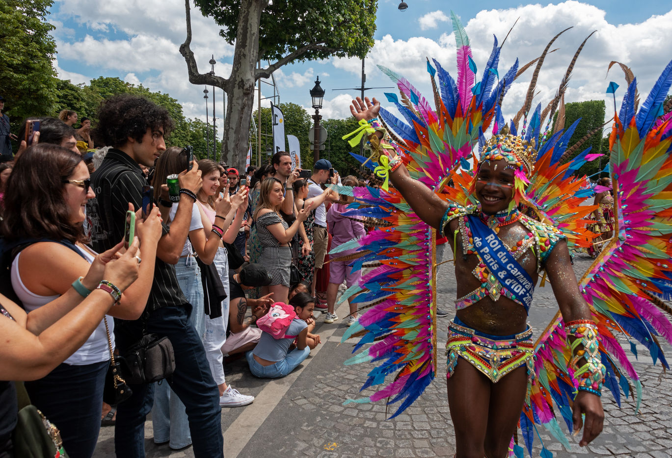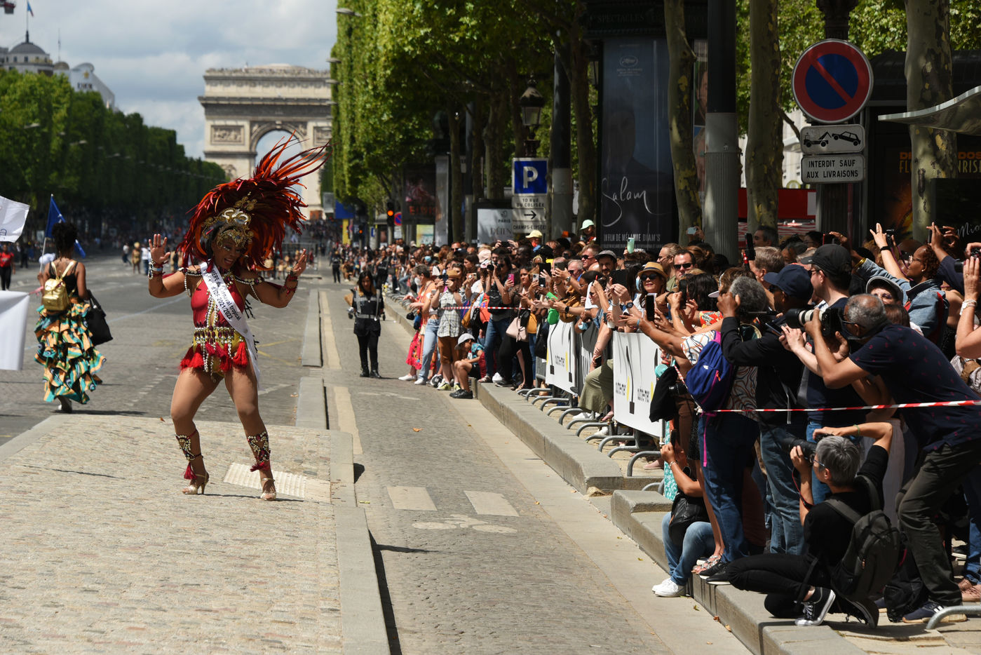 20th edition of the Tropical Carnival of Paris on the Champs-Elysees, pedestrianized for the occasion. Celebration of the overseas and Europe of the 3 oceans.