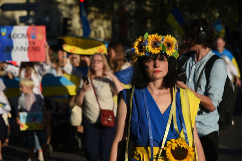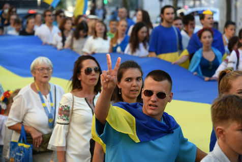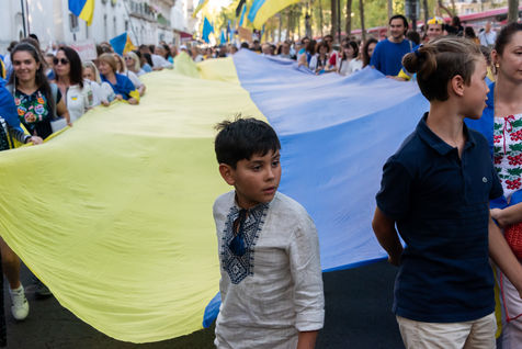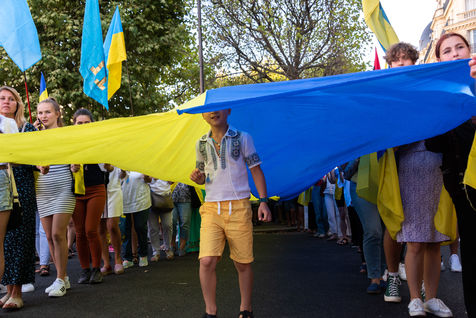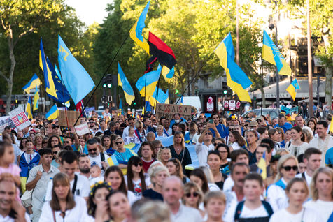 Marche ukrainienne en l'honneur du jour de l'indépendance de l'Ukraine et contre l'invasion de l'Ukraine par la guerre russe a eu lieu à Paris.