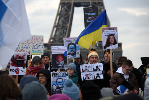 Rally in support of Alexey Navalny and other political prisoners in Russia and against the war in Ukraine. Photograph by Maxim KOROTCHENKO / Hans Lucas.