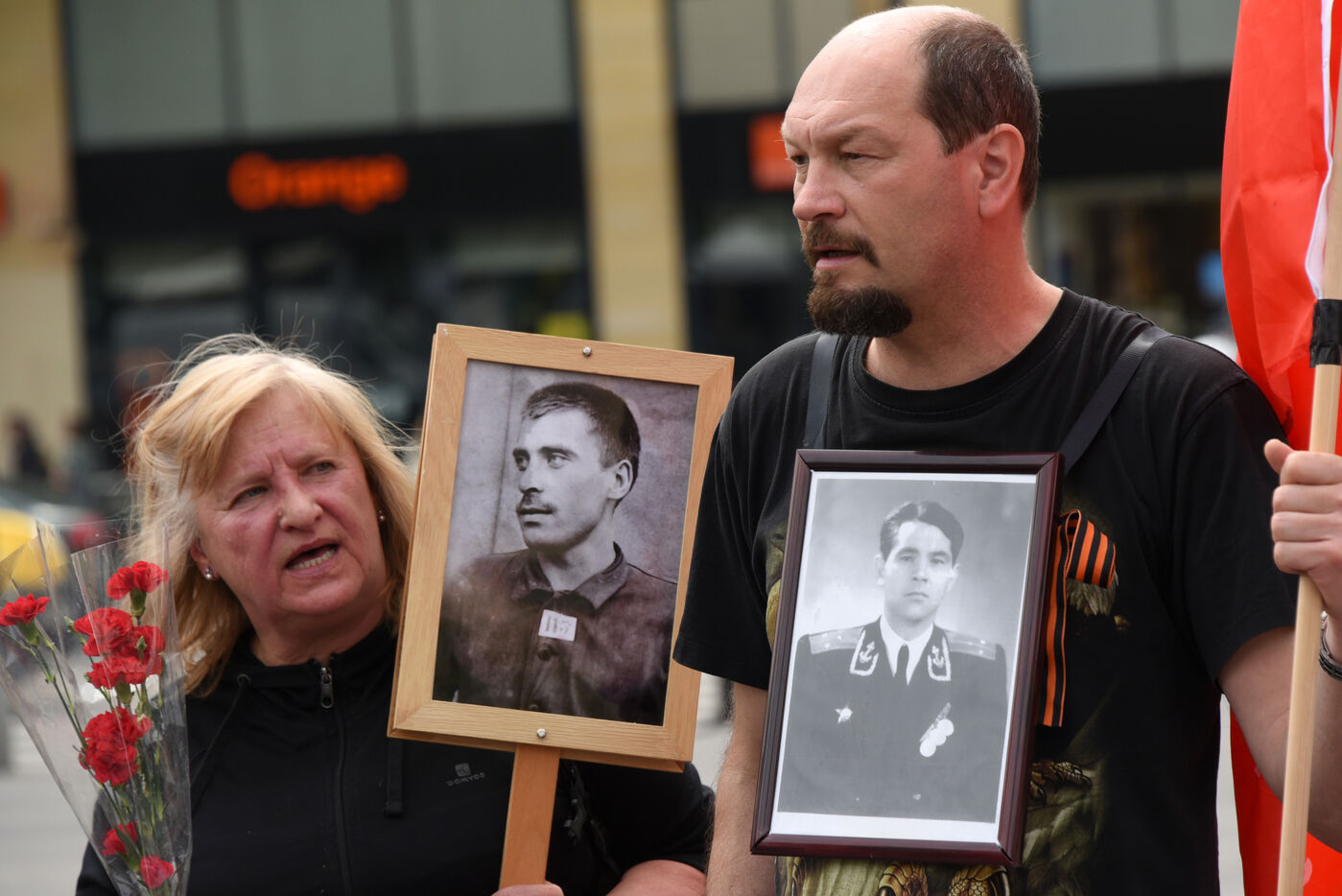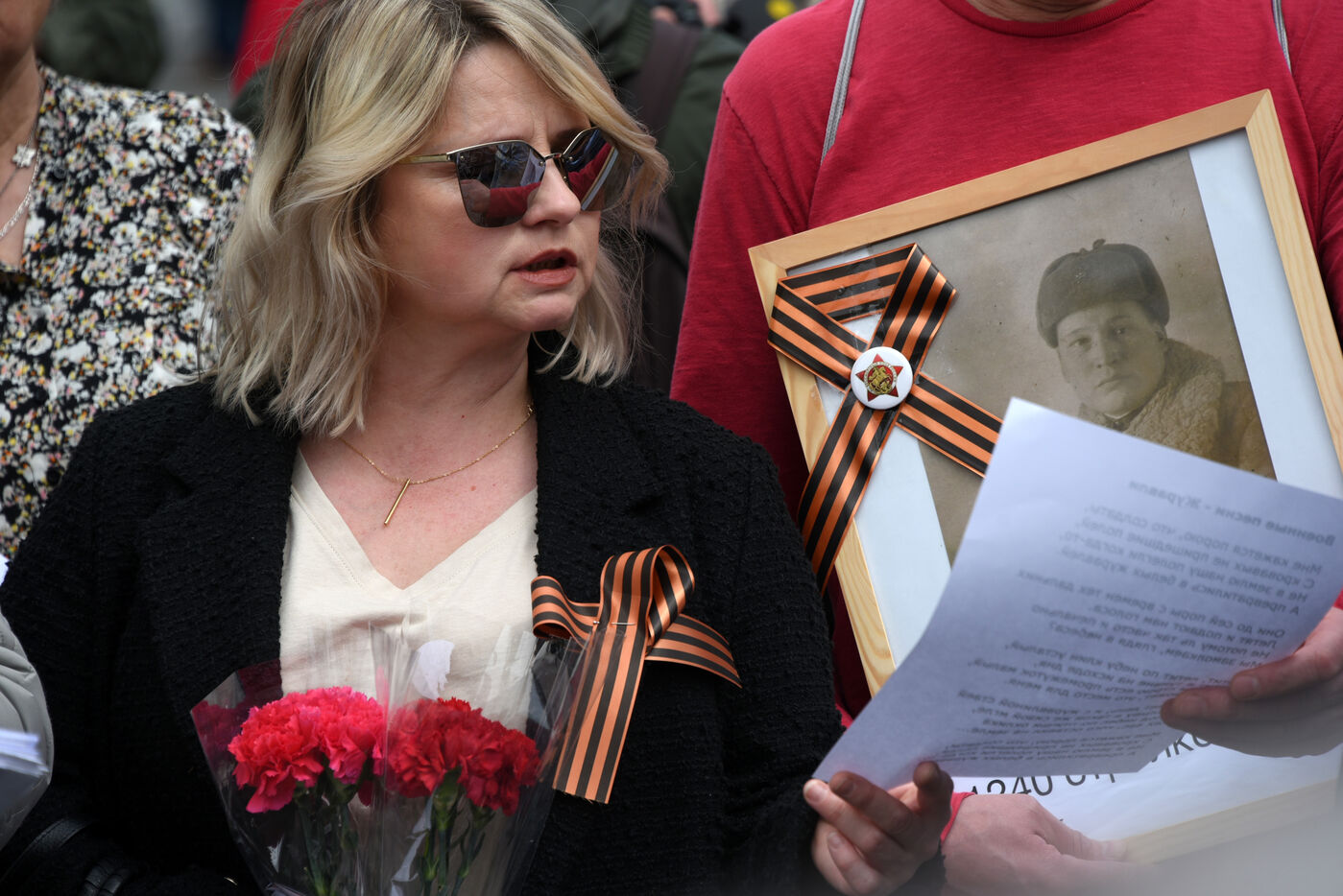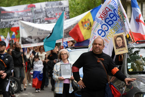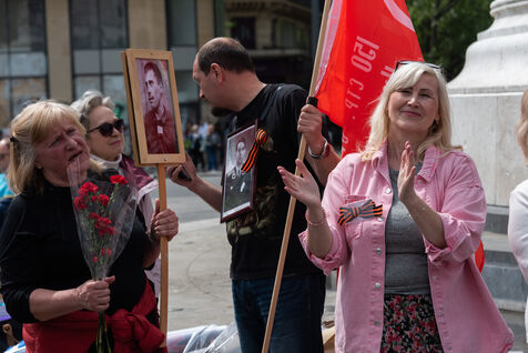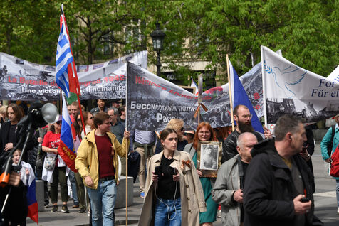 People take part in the Russian Immortal Regiment demonstration marking the 78th anniversary of the victory over Nazi Germany in World War II (VE Day).