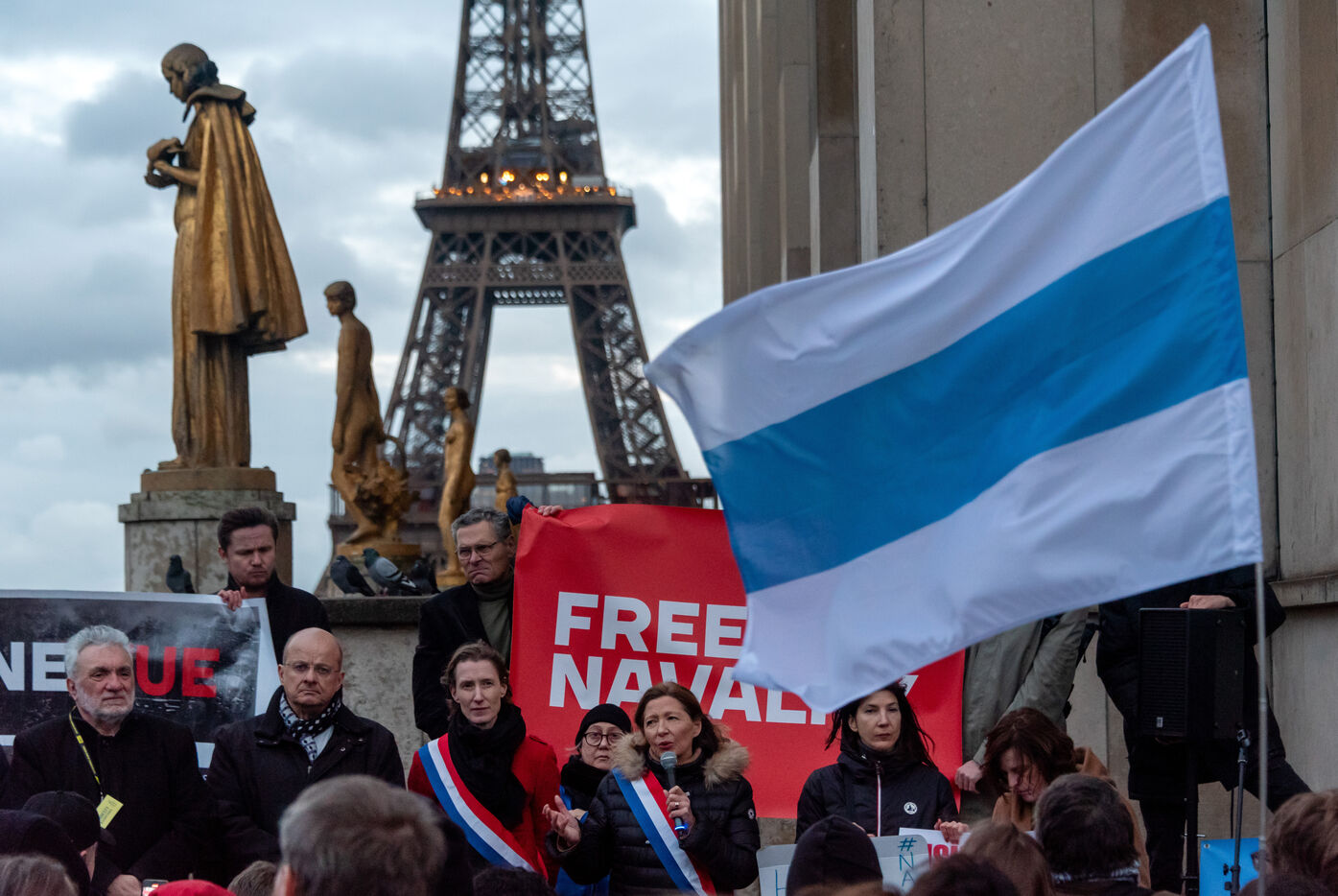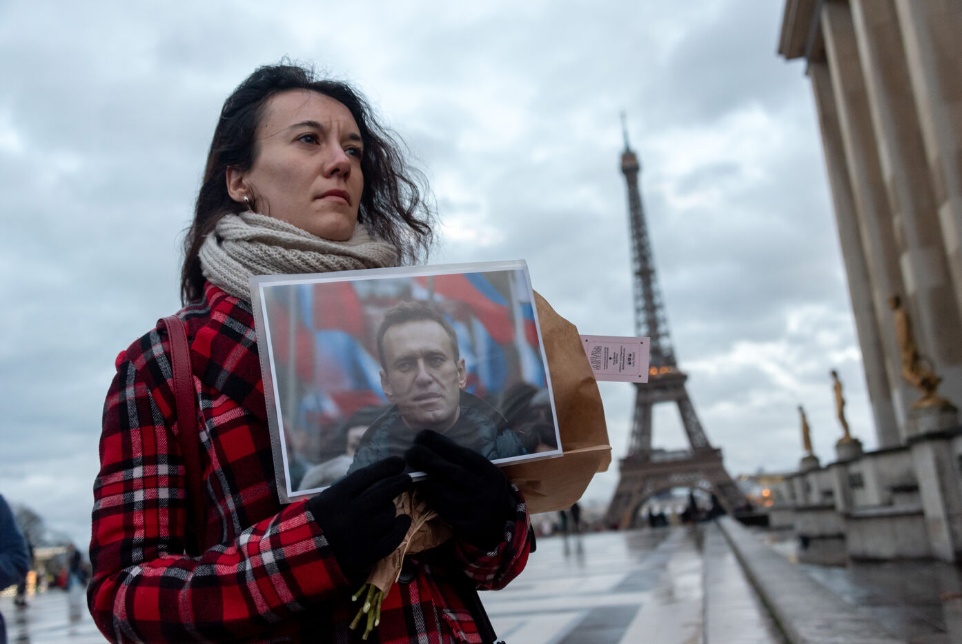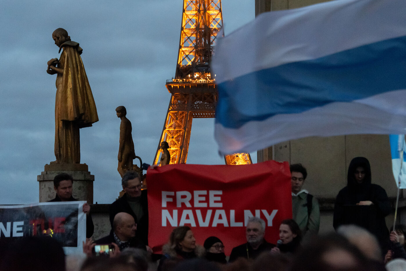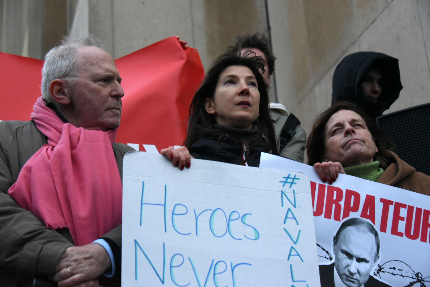 People at the demonstration in tribute of Alexei Navalny, a Russian opponent and political prisoner who is supposed to be killed in prison in Russia.