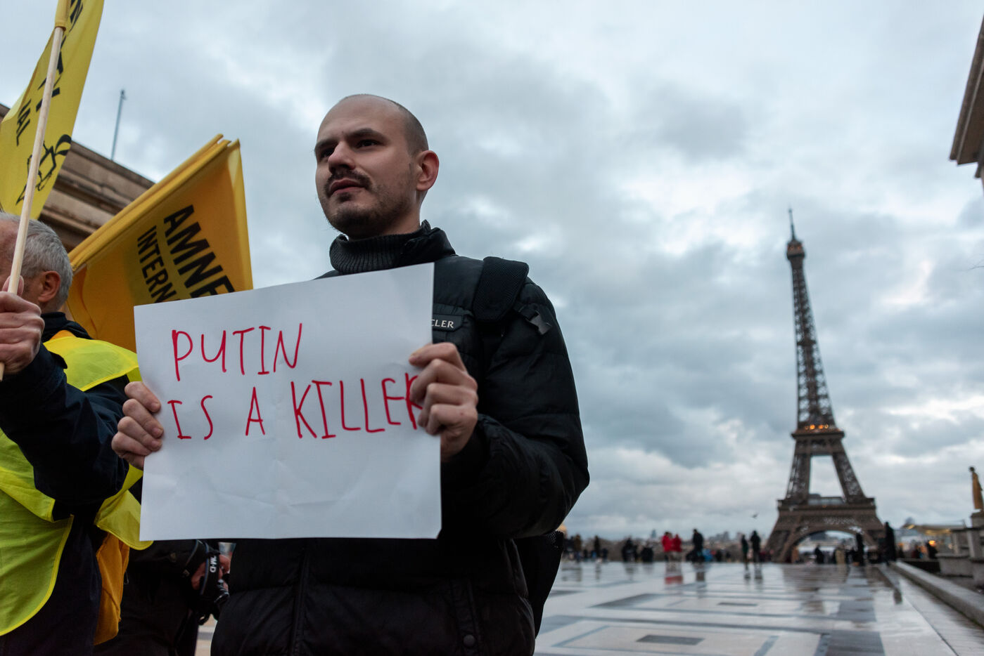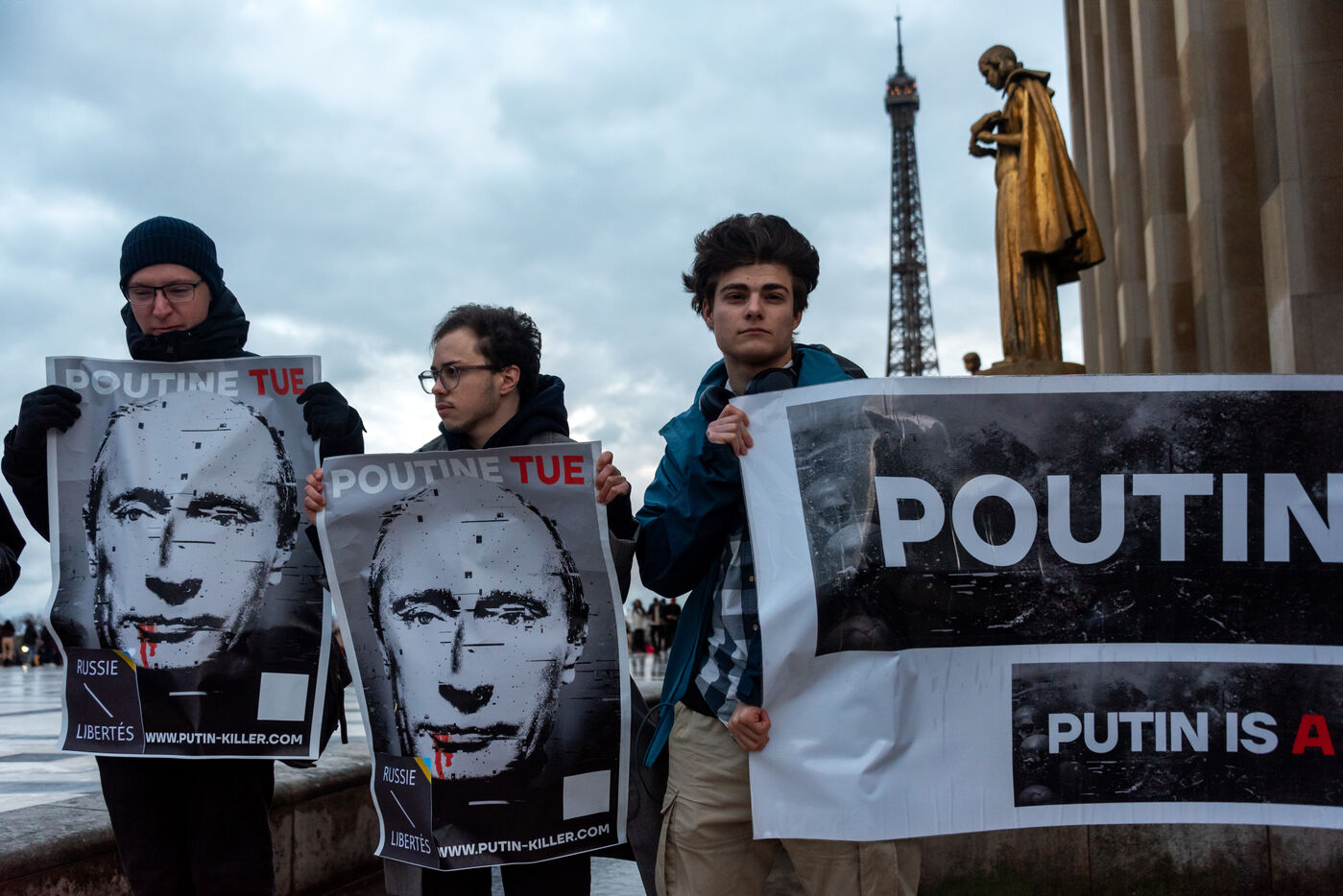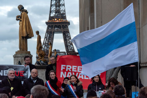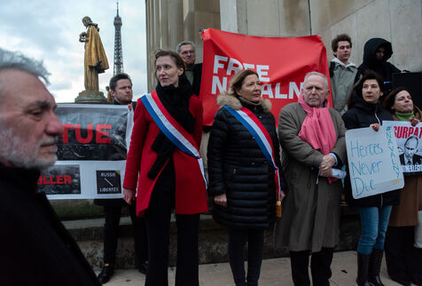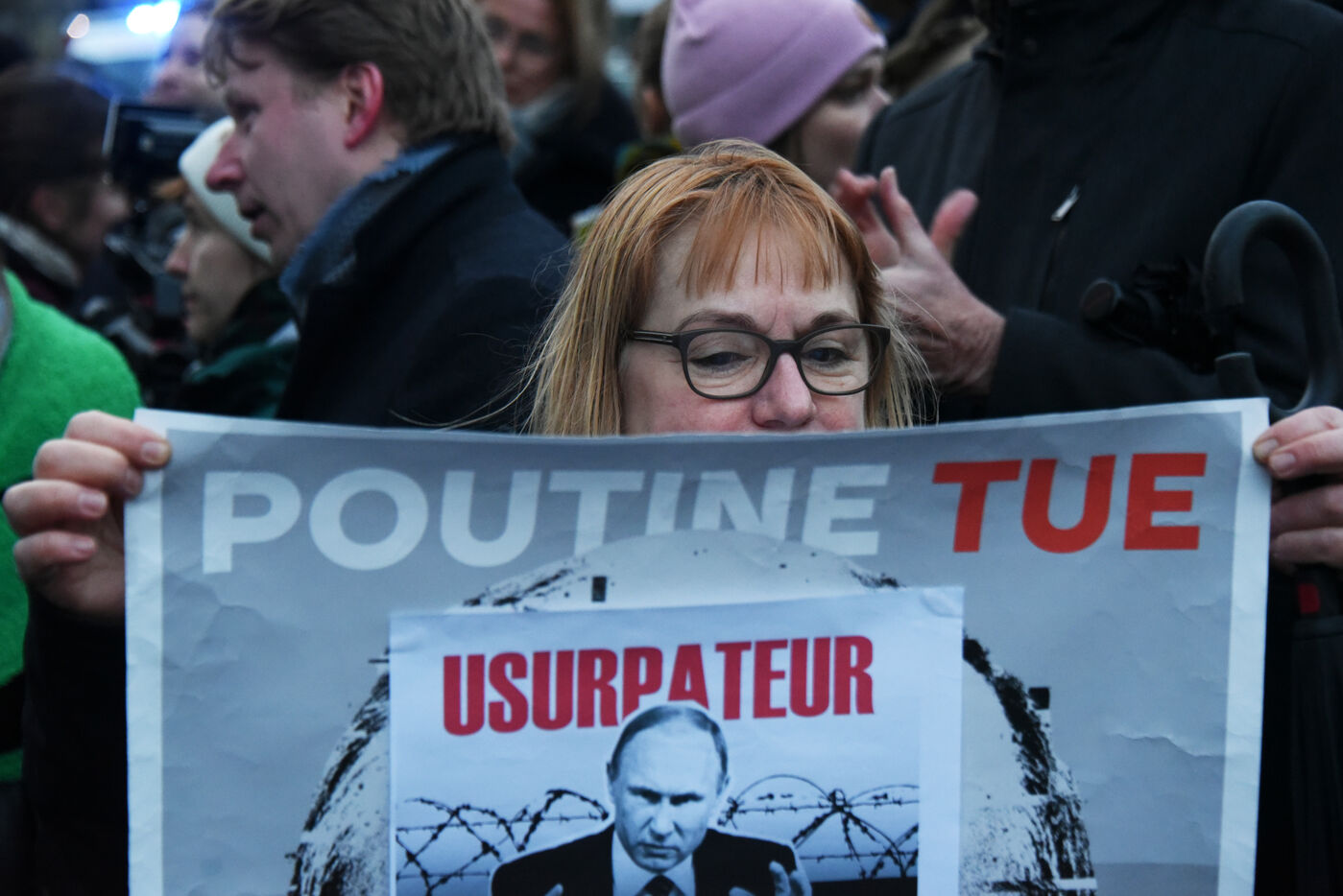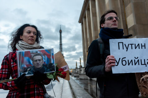 People at the demonstration in tribute of Alexei Navalny, a Russian opponent and political prisoner who is supposed to be killed in prison in Russia.