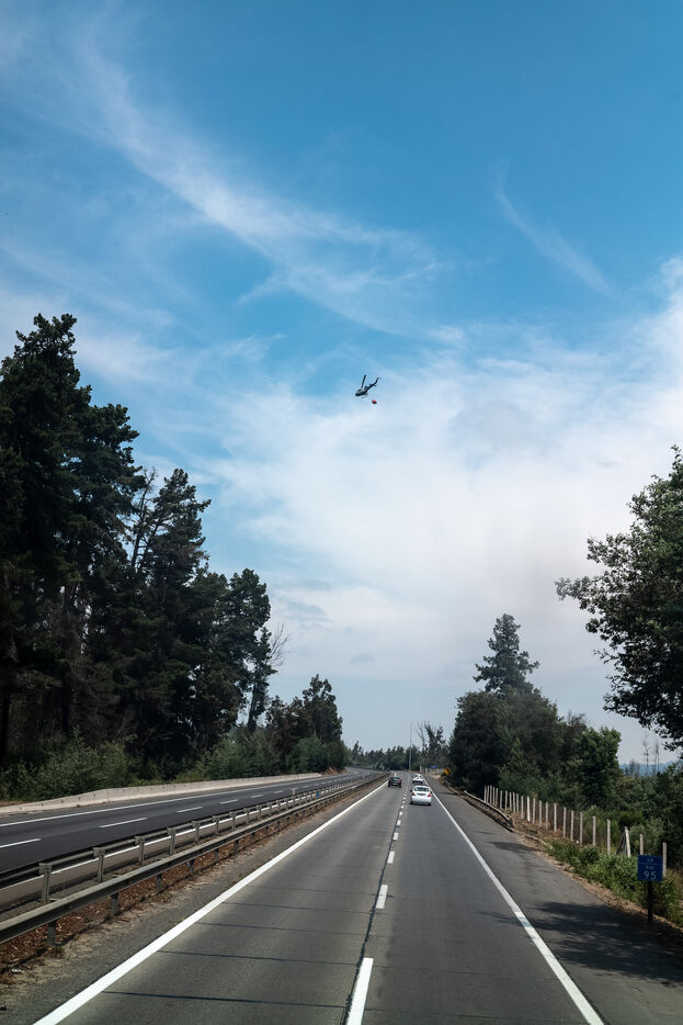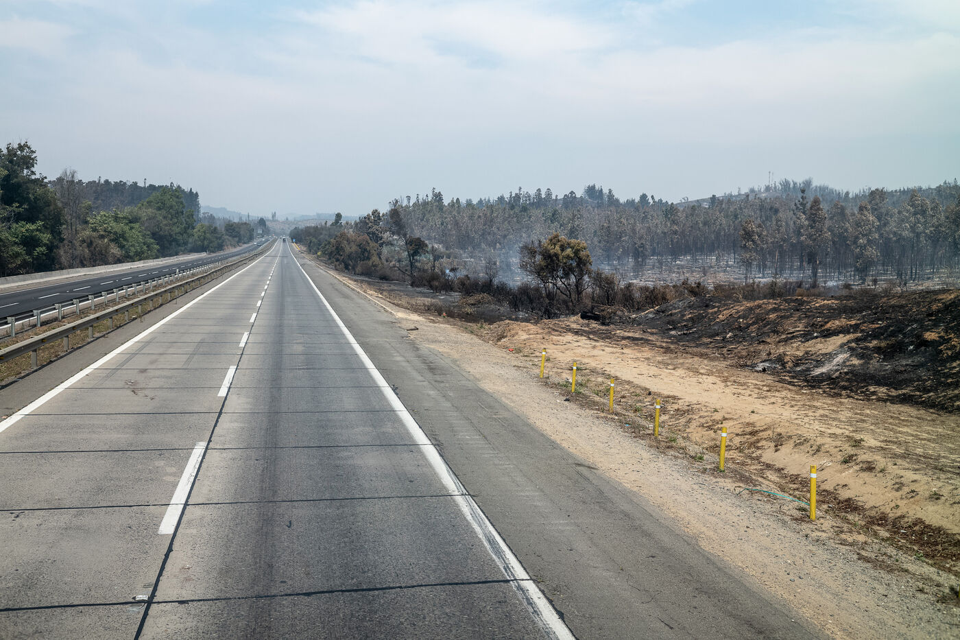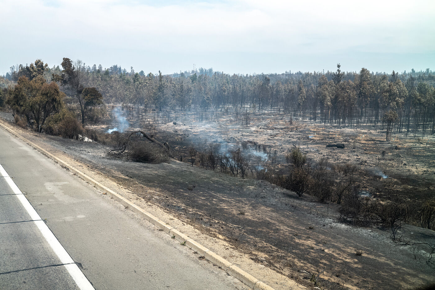 Ce dimanche 04 Février 2024 de gigantesques incendies continuent de faire rage au Chili, notamment dans la région de Valparaiso. Située sur le littoral au centre du pays cette région balnéaire et touristique fait face à un incendie d'une ampleur unique dans l'histoire de la région. Habitués au feux durant l'été, les Chiliens et Chiliennes voient tous les ans une amplification du phénomène du à l'augmentation des températures caniculaire. Ce dimanche sur la route 68 reliant Santiago du Chili à Valparaiso les secours s'activent encore, et sur les bords de la route, on peut observer la végétation calcinée.