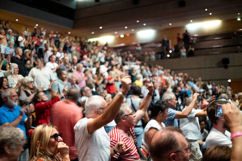 Désigné par la coalition du Nouveau Front Populaire pour être nommé 1ère Ministre, Lucie Castets était présente lors de l'université d'été du Parti Communiste à Montpellier le 23 Août 2024. Fabien Roussel, 1er secrétaire du Parti Communiste était présent à ses côtés lors d'une conférence attendue par plusieurs centaines de militants et sympathisants.