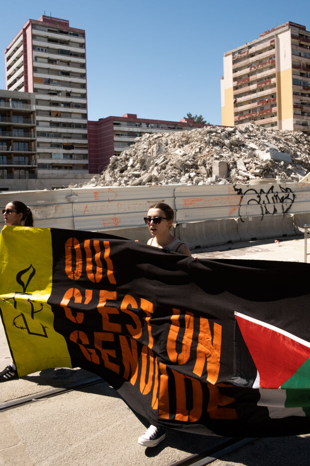 Several hundred people demonstrated from the working-class district of La Paillade to Place de la Comédie in Montpellier on Saturday 17 May to commemorate the 77th anniversary of the start of the Nakba and call for an end to the genocide in Palestine.