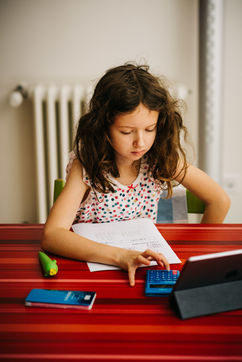 Children taking online courses from their homes in Toulouse, France during the COVID-19 lockdown period.