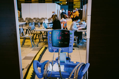 A vaccination centre opened in Toulouse at the end of March 2021 in hall 8 of the former exhibition centre on the Ile du Ramier. Volunteers, firemen, students, doctors and nurses take care of patients who have made an appointment by telephone according to age and pathology criteria. The centre currently vaccinates more than 2000 patients per day with Pfizer vaccines.