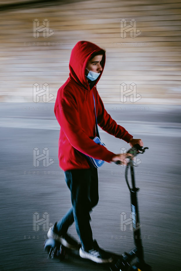 In Paris, on the expressway on the right bank of the Seine, free of cars, unlocked parisians take advantage of the spring days to play sports or to use sustainable means of transportation (bicycle, scooter, rollerblades, etc.).