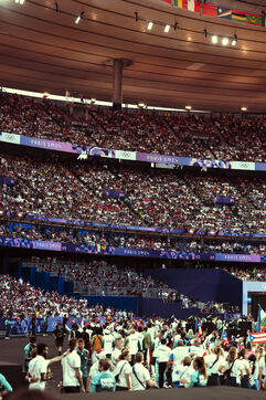 The Closing Ceremony of the Paris 2024 Olympic Games at the Stade de France as a spectator. After the acclaimed athletes and volunteers entered the stadium, the artistic performances followed: a ring climb with dancers, a concert by Phoenix and Angèle, speeches by Tony Estanguet and Thomas Bach, the passing of flags with a Tom Cruise stunt and a fireworks finale with Yseult. A festive evening to celebrate the success of the Paris Games, and pass the torch to the Paralympic Games to come.