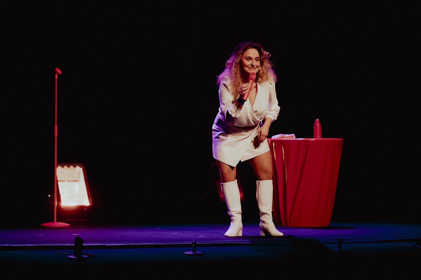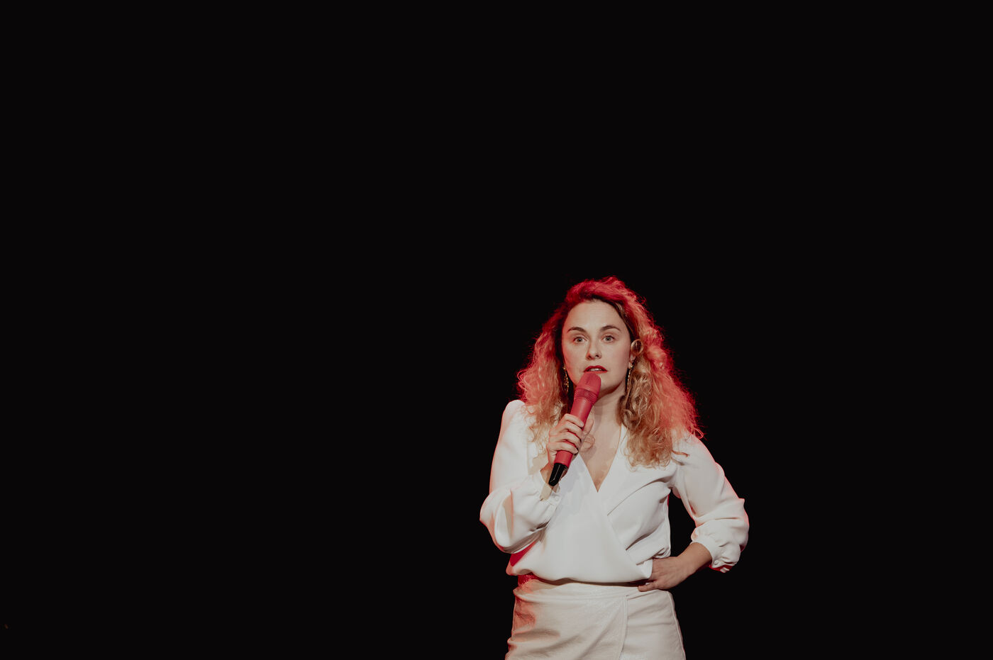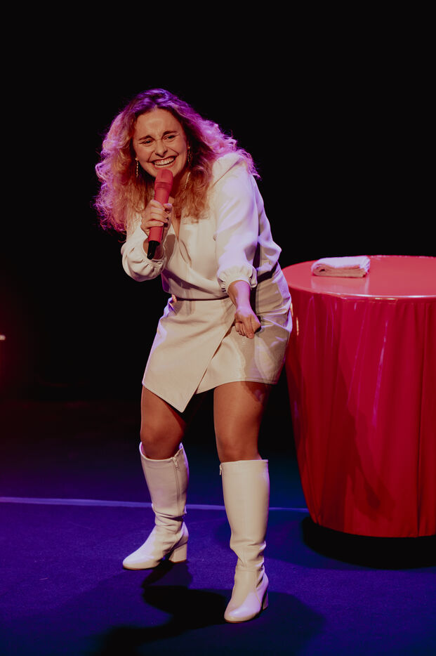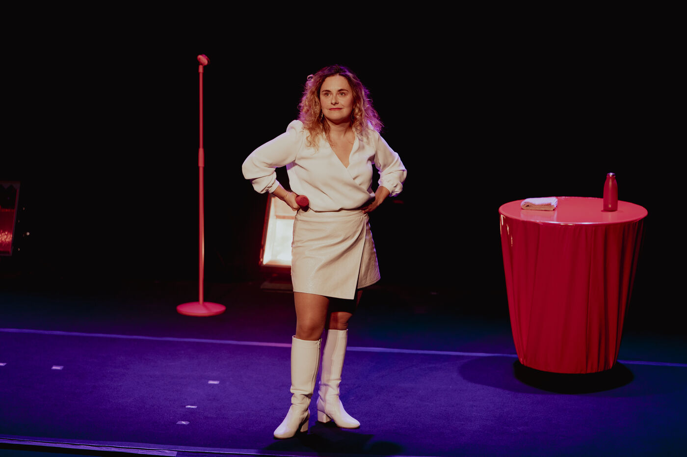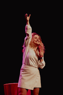 Calme de l'humoriste Sawnn Perisse. Elle joue un spectacle de stand-up qui parle de colère, de randonnée, de sexe, de sextoys, de consentement, de haters, de lavement, de justice, d'écologie, et surtout d'indignation