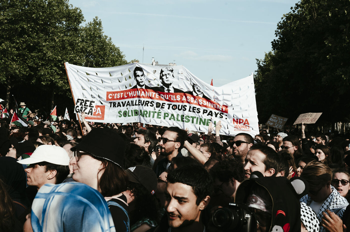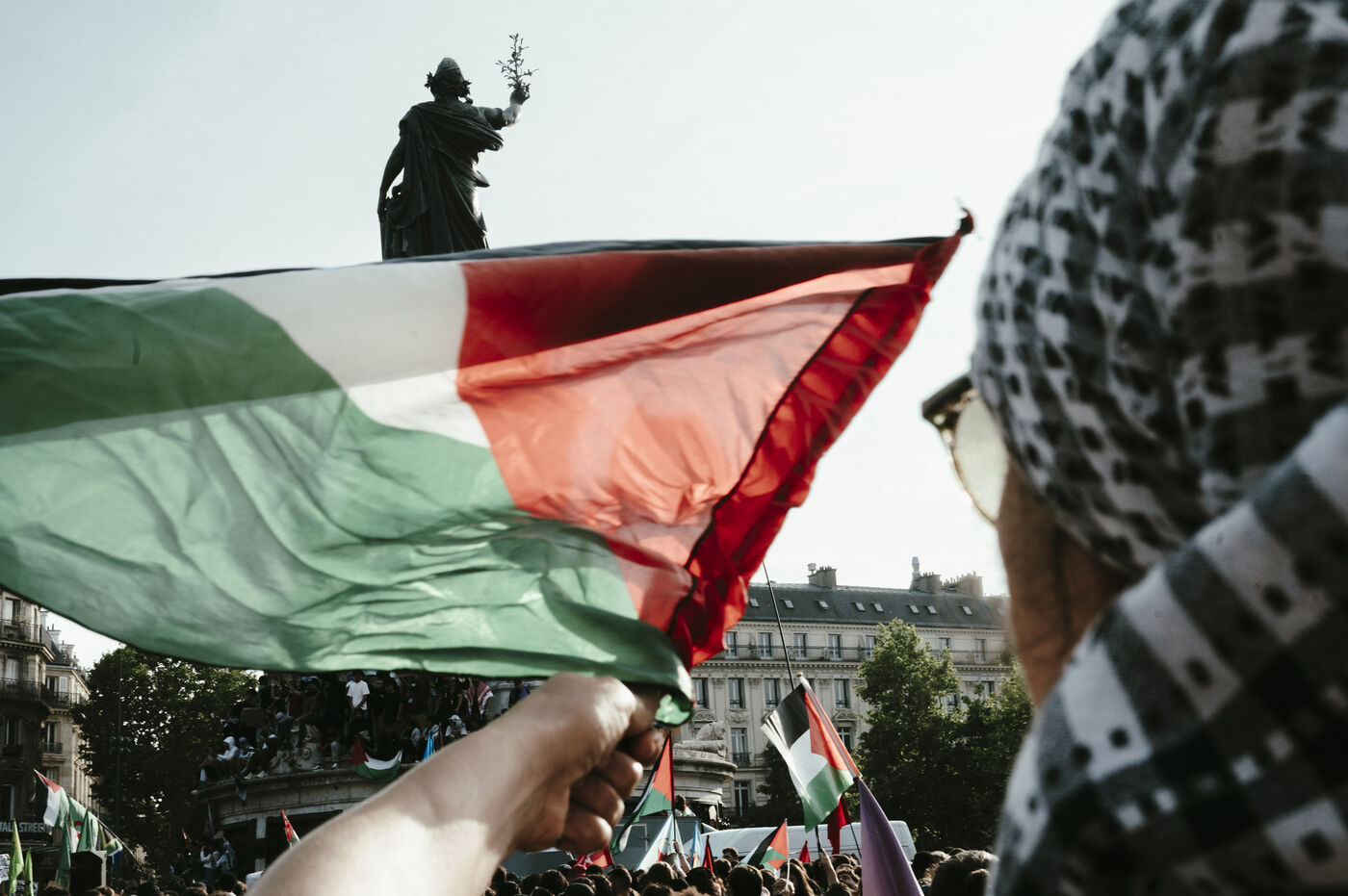 Rally following the arrest of activists and journalists and the boarding of the Freedom Flotilla Madleen, and in support of the people of Gaza, against the ongoing genocide and for an immediate ceasefire, Place de la République.