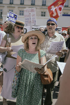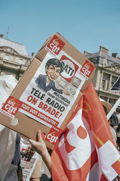 Demonstration against the holding company for public broadcasting set up by Culture Minister Rachida Dati. The demonstration followed several days of strike action at Radio France, France Télévisions and the INA.