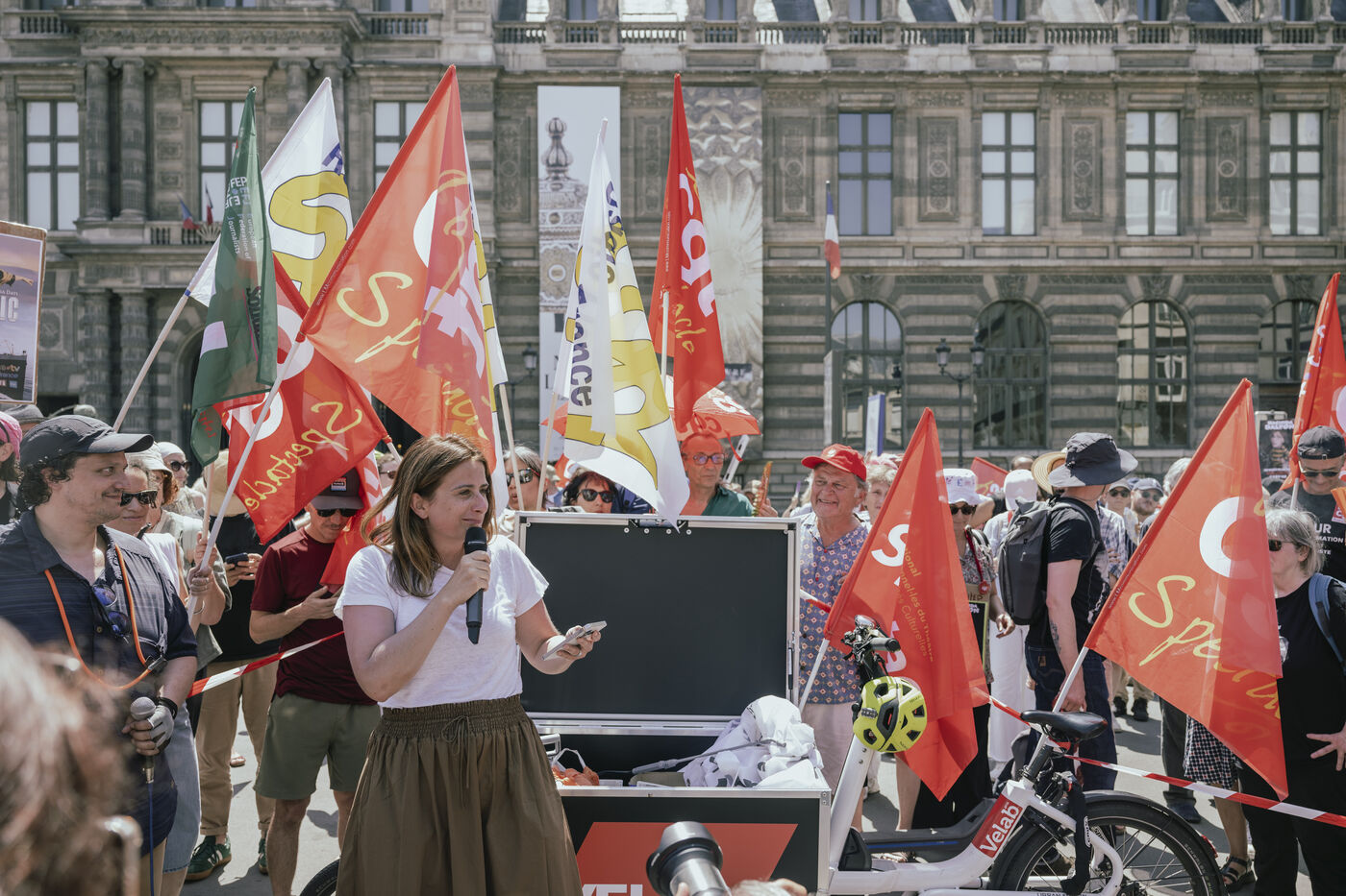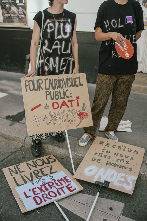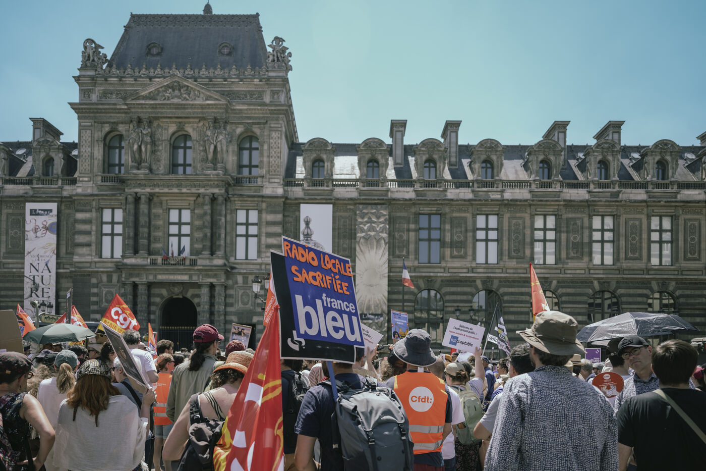 Manifestation contre la holding de l’audiovisuel public porté par la ministre de la Culture Rachida Dati. Une mobilisation qui fait suite à plusieurs jours de grève au sein de Radio France, de France Télévisions et de l’INA.